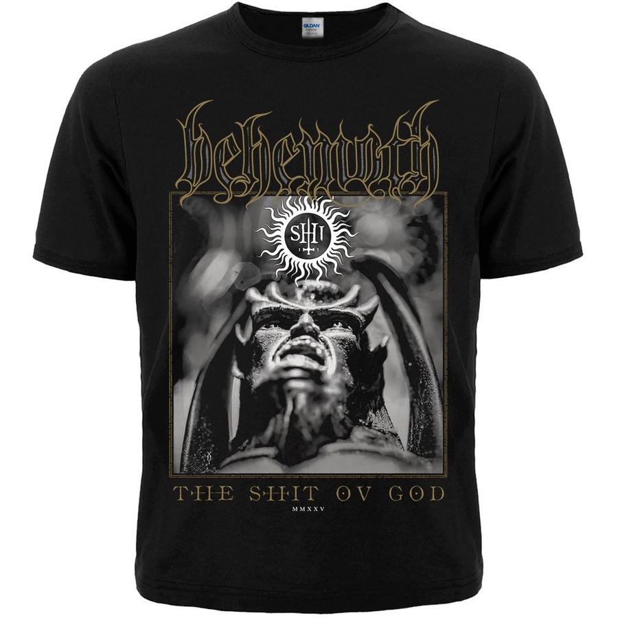 Футболка Behemoth "The Shit Ov God" виробництво: Gildan; тканина: 100% бавовна (якісні шви, горловина не розтягується). Щільність 160 г / м² малюнок нанесений методом шовкотрафаретного друку (не тріскається, не псується внаслідок прання, не вигорає); малюнок: фарба пластизольна виробництва EU. Прати при температурі до 30°