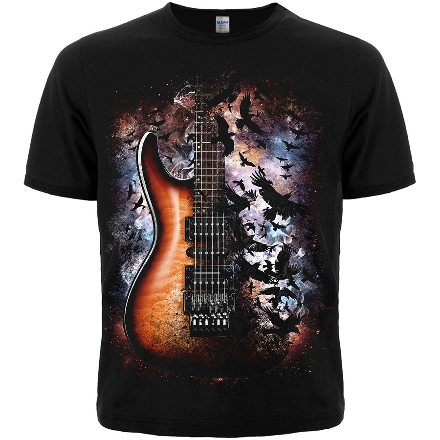 Футболка Crow and Guitar in Space виробництво: Gildan;тканина: 100% бавовна (якісні шви, горловина не розтягується). Щільність 160 г / м²малюнок нанесений методом шовкотрафаретного друку (не тріскається, не псується внаслідок прання, не вигорає);малюнок: фарба пластизольна виробництва EU.Прати при температурі до 30°