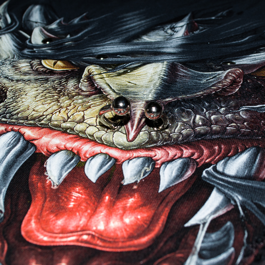 малюнок: світиться в темряві, ефект 3D, з елементами металевої фурнітури і пірсингу.