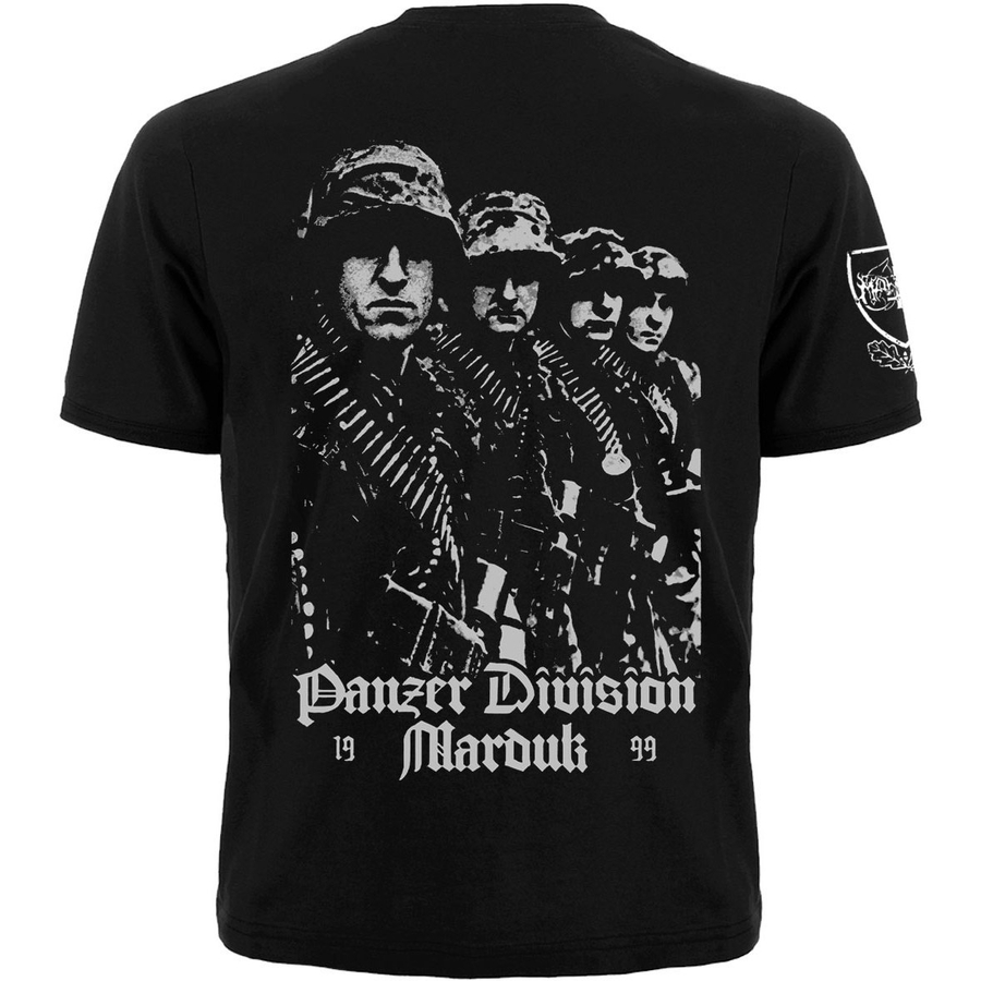Футболка Marduk "Panzer Division Marduk" (лого на рукаві) виробництво: Gildan; тканина: 100% бавовна (якісні шви, горловина не розтягується). Щільність 160 г / м² малюнок нанесений методом шовкотрафаретного друку (не тріскається, не псується внаслідок прання, не вигорає); малюнок: фарба пластизольна виробництва EU. Прати при температурі до 30°