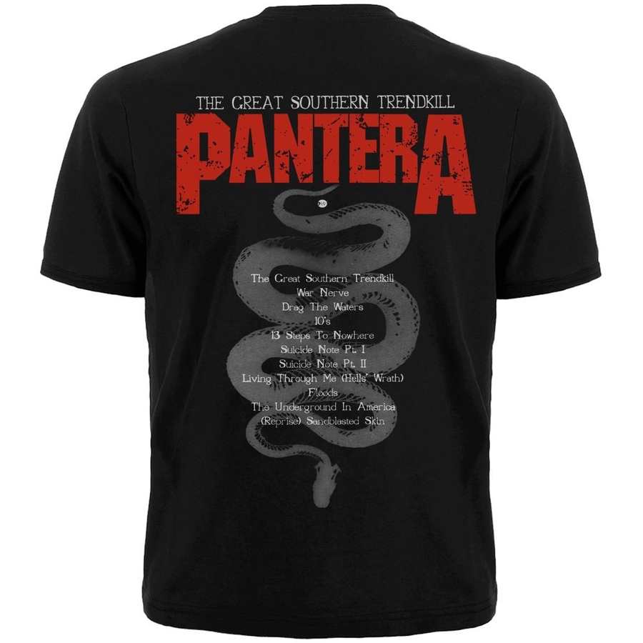 Футболка Pantera "The Great Southern Trendkill" виробництво: Gildan; тканина: 100% бавовна (якісні шви, горловина не розтягується). Щільність 160 г / м² малюнок нанесений методом шовкотрафаретного друку (не тріскається, не псується внаслідок прання, не вигорає); малюнок: фарба пластизольна виробництва EU. Прати при температурі до 30°