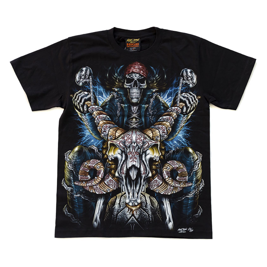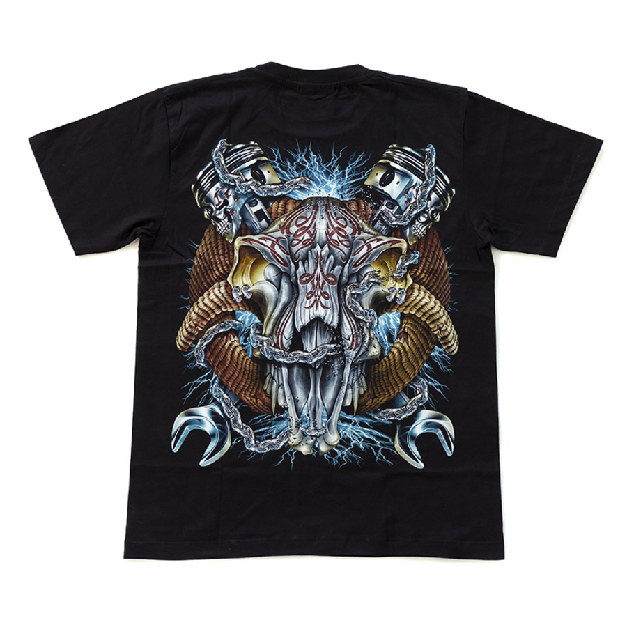 Футболка Скелет на мотоциклі з черепом бика (світиться в темряві) (Rock Chang, High Definition HD, glow)
