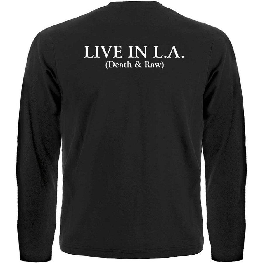 Футболка з довгим рукавом Death "Live in L.A."виробник: Rockway;тканина: 100% бавовна (якісні шви, горловина не розтягується);малюнок нанесений методом шовкотрафаретного друку (не тріскається, не псується внаслідок прання, не вигорає);малюнок: фарба пластизольна виробництва EU.Прати при температурі 30°