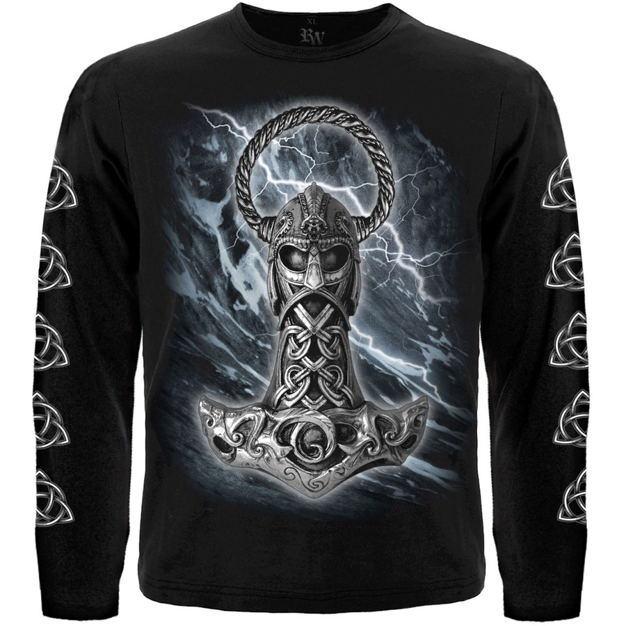 Футболка з довгим рукавом Молот Тора (трикветр) виробник: Rockway; тканина: 100% бавовна (якісні шви, горловина не розтягується); малюнок нанесений методом шовкотрафаретного друку (не тріскається, не псується внаслідок прання, не вигорає); малюнок: фарба пластизольна виробництва EU. Прати при температурі 30°