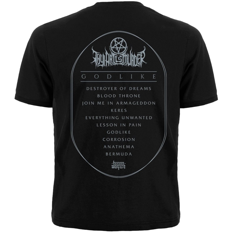 Футболка Thy Art Is Murder "Godlike" виробництво: Gildan; тканина: 100% бавовна (якісні шви, горловина не розтягується). Щільність 160 г / м² малюнок нанесений методом шовкотрафаретного друку (не тріскається, не псується внаслідок прання, не вигорає); малюнок: фарба пластизольна виробництва EU. Прати при температурі до 30°