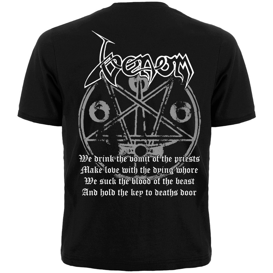 Футболка Venom "Black Metal" (666, pentagram and cross) виробництво: Gildan; тканина: 100% бавовна (якісні шви, горловина не розтягується). Щільність 160 г / м² малюнок нанесений методом шовкотрафаретного друку (не тріскається, не псується внаслідок прання, не вигорає); малюнок: фарба пластизольна виробництва EU. Прати при температурі до 30°