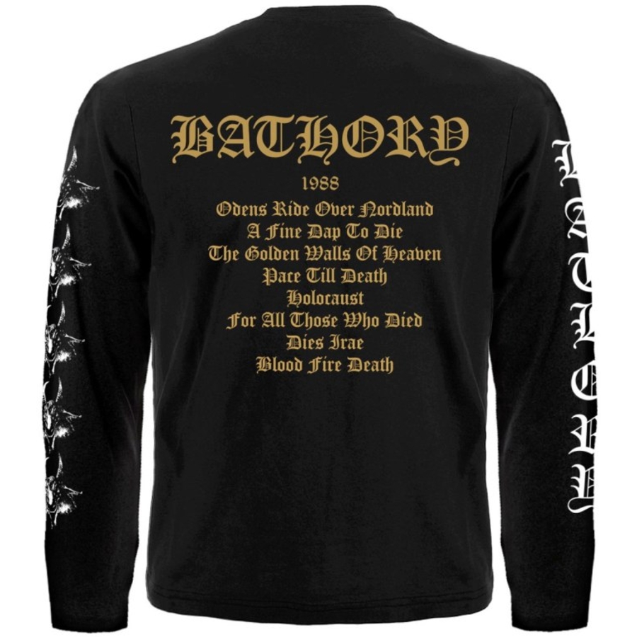 Футболка з довгим рукавом Bathory "Blood Fire Death"    виробник: Rockway;  тканина: 100% бавовна (якісні шви, горловина не розтягується);  малюнок нанесений методом шовкотрафаретного друку (не тріскається, не псується внаслідок прання, не вигорає);  малюнок: фарба пластизольна виробництва EU.  Прати при температурі 30°
