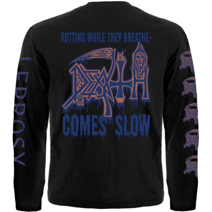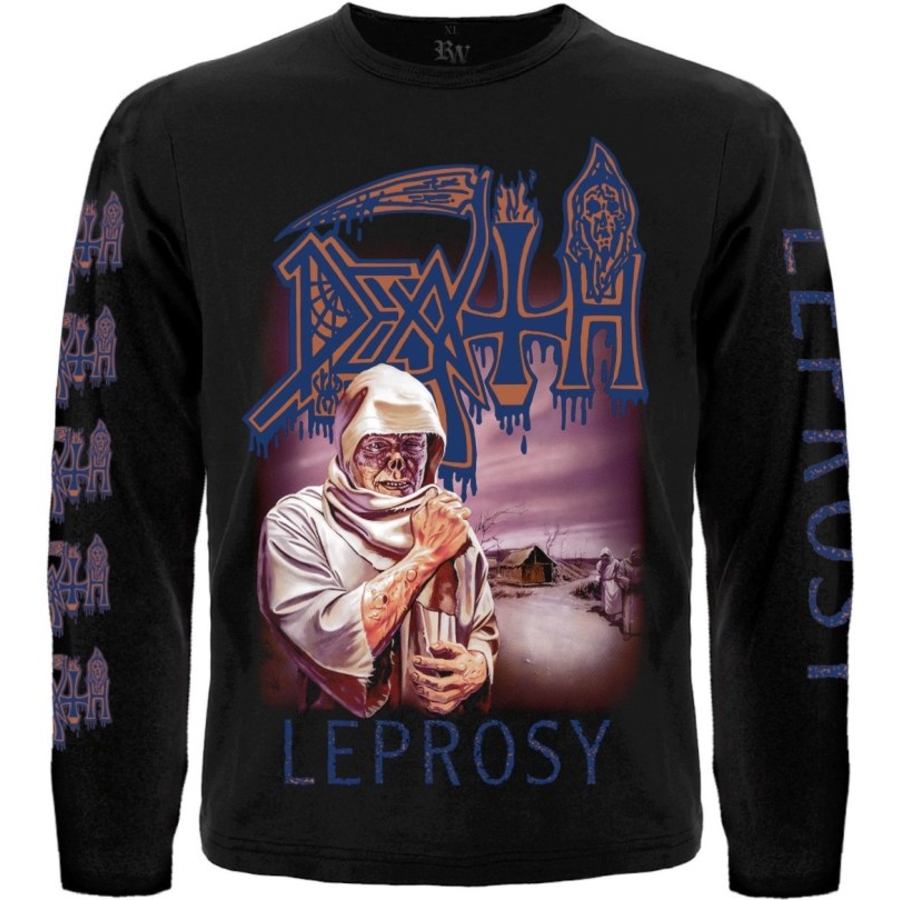 Футболка з довгим рукавом Death "Leprosy" виробник: Rockway; тканина: 100% бавовна (якісні шви, горловина не розтягується); малюнок нанесений методом шовкотрафаретного друку (не тріскається, не псується внаслідок прання, не вигорає); малюнок: фарба пластизольна виробництва EU. Прати при температурі 30°