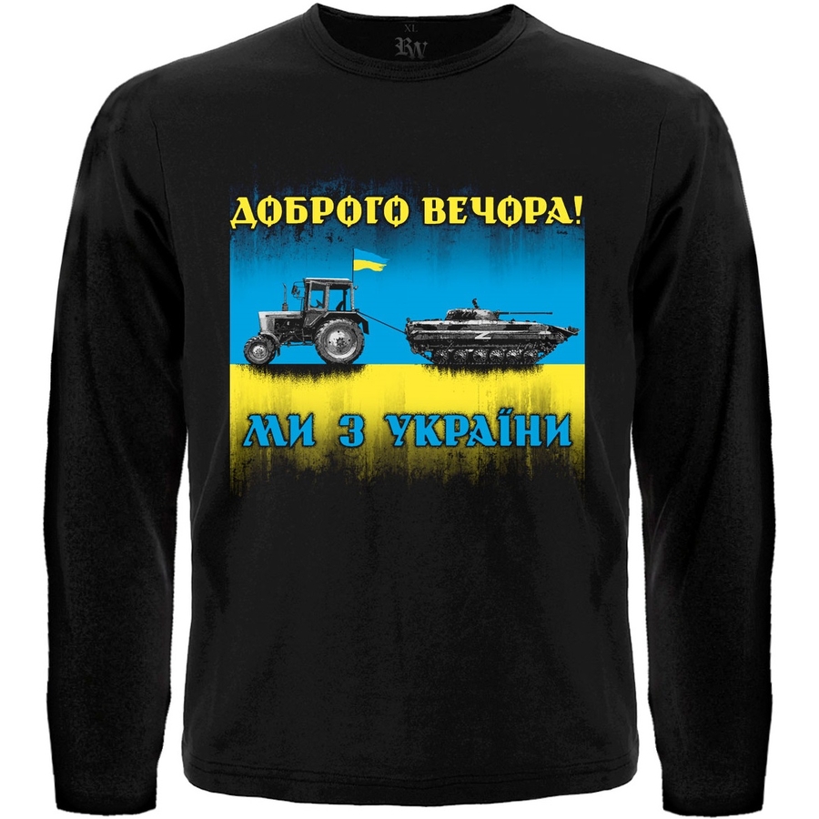 Футболка з довгим рукавом Доброго вечора! Ми з України (трактор мисливець)