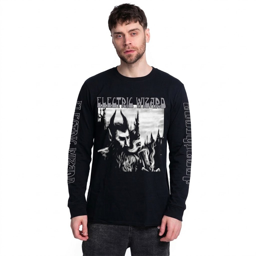 Футболка з довгим рукавом Electric Wizard "Dopethrone"Для тих, хто полюбляє максимально важкий, в'язкий саунд Stoner Doom Metal та Sludge Metal. Культовий принт альбому передає окультну та психоделічну атмосферу, яка так цінується фанатами Sleep, Cathedral, Black Sabbath та Windhand. Додайте до свого образу дещицю окультного металу та відчуйте потужність справжнього дисторшну. Тканина: 100% бавовна, якісні шви, горловина не розтягується. Зображення нанесено методом шовкотрафаретного друку, пластизольними фарбами виробництва EU (не тріскається, не псується внаслідок прання, не вигорає). Прати при температурі до 30°, бажано навиворіт, з мінімальним віджиманням.