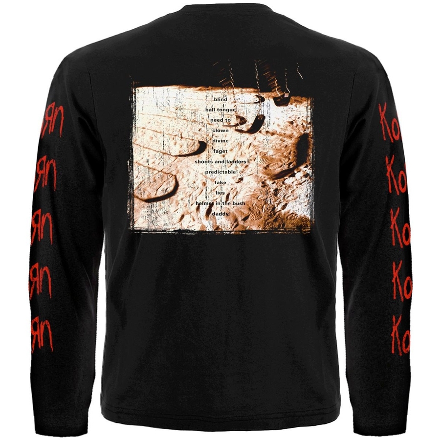 Футболка з довгим рукавом Korn "Korn" (1994) виробник: Rockway; тканина: 100% бавовна (якісні шви, горловина не розтягується); малюнок нанесений методом шовкотрафаретного друку (не тріскається, не псується внаслідок прання, не вигорає); малюнок: фарба пластизольна виробництва EU. Прати при температурі 30°