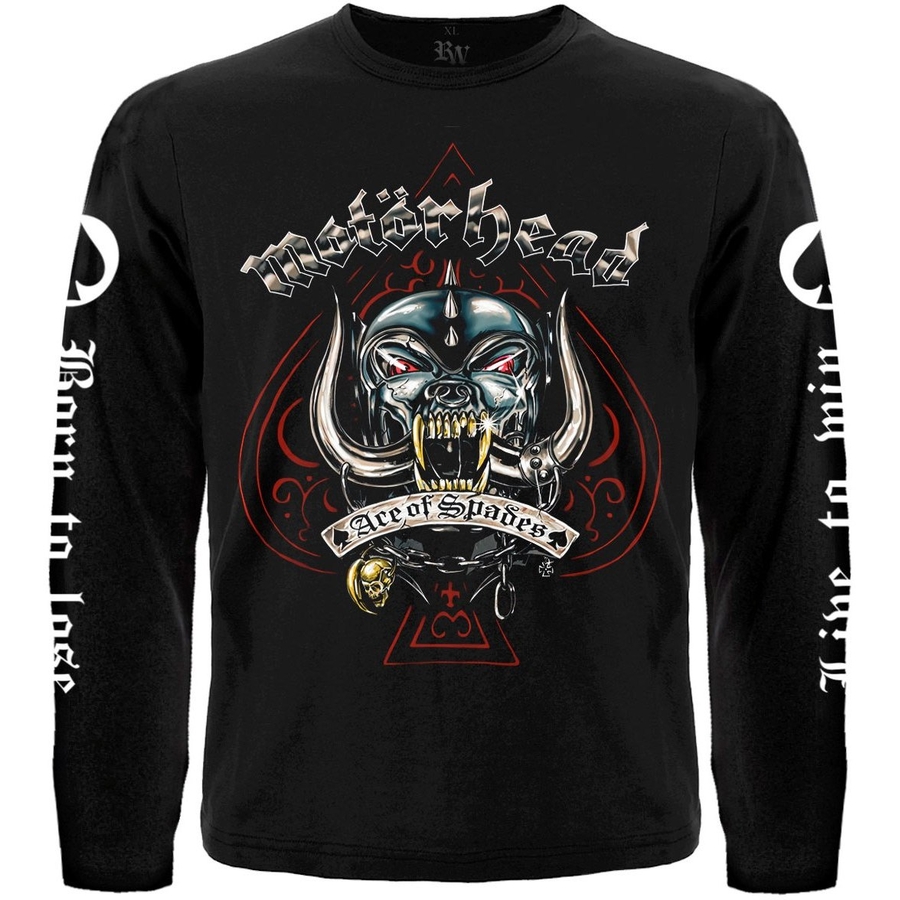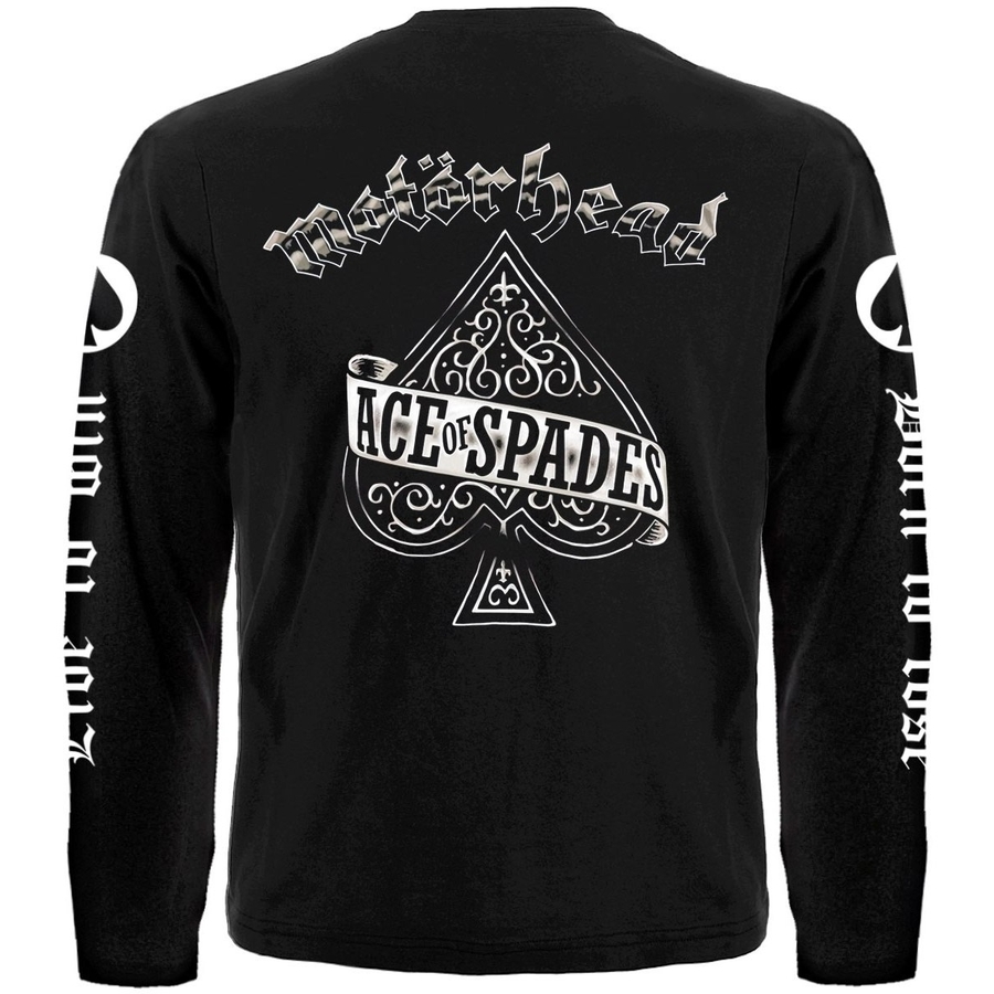 Футболка з довгим рукавом Motorhead "Ace Of Spades" виробник: Rockway; тканина: 100% бавовна (якісні шви, горловина не розтягується); малюнок нанесений методом шовкотрафаретного друку (не тріскається, не псується внаслідок прання, не вигорає); малюнок: фарба пластизольна виробництва EU. Прати при температурі 30°
