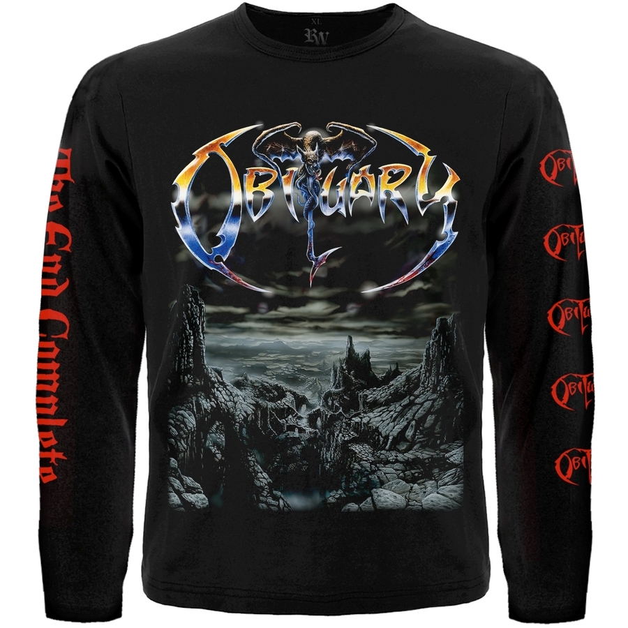 Футболка з довгим рукавом Obituary "The End Complete" виробник: Rockway; тканина: 100% бавовна (якісні шви, горловина не розтягується); малюнок нанесений методом шовкотрафаретного друку (не тріскається, не псується внаслідок прання, не вигорає); малюнок: фарба пластизольна виробництва EU. Прати при температурі 30°