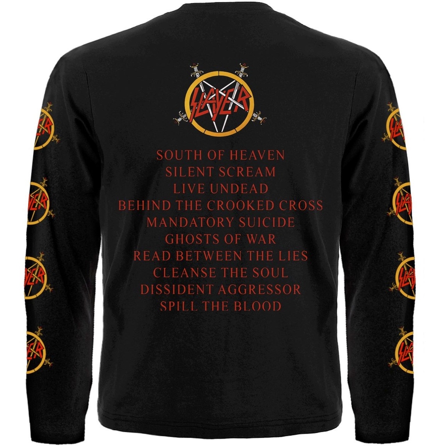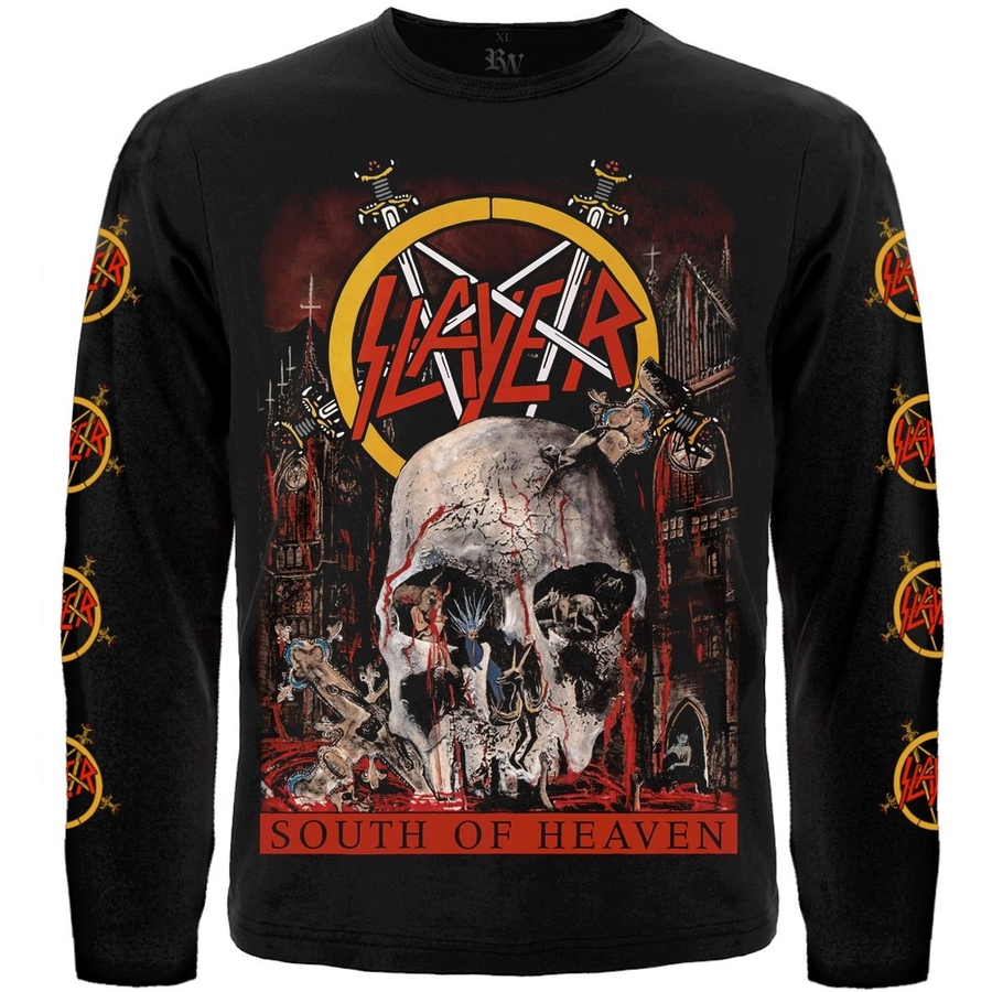 Футболка з довгим рукавом Slayer "South of Heaven"виробник: Rockway;тканина: 100% бавовна (якісні шви, горловина не розтягується);малюнок нанесений методом шовкотрафаретного друку (не тріскається, не псується внаслідок прання, не вигорає);малюнок: фарба пластизольна виробництва EU.Прати при температурі 30°