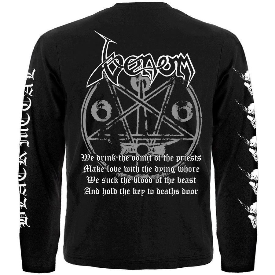 Футболка з довгим рукавом Venom "Black Metal" (666, pentagram and cross) виробник: Rockway; тканина: 100% бавовна (якісні шви, горловина не розтягується); малюнок нанесений методом шовкотрафаретного друку (не тріскається, не псується внаслідок прання, не вигорає); малюнок: фарба пластизольна виробництва EU. Прати при температурі 30°