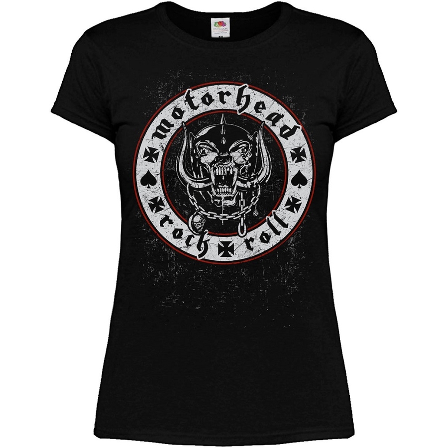 Футболка жіноча Motorhead (rock’n’roll)виробництво: Fruit of the Loom;тканина: 100% бавовна (якісні шви, горловина не розтягується). Щільність 160 г / м²малюнок нанесений методом шовкотрафаретного друку (не тріскається, не псується внаслідок прання, не вигорає);малюнок: фарба пластизольна виробництва EU.Прати при температурі до 30°