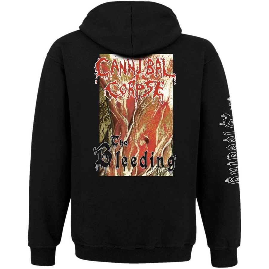 Для справжніх фанатів Brutal Death Metal та бетонобитних гуртів Deicide, Suffocation, Morbid Angel, Malevolent Creation та тощо. Худі присвячене культовому четвертому альбому "The Bleeding" легенд світового дет-металу - гурту Cannibal Corpse. Це останній альбом за участю вокаліста Кріса Барнса (Chris Barnes) та справжній шедевр, що визначив канони жанру на десятиліття вперед. Cannibal Corpse є еталоном Brutal Death Metal. Гурт відомий своїми надшвидкими бласт-бітами, технічними гітарними рифами, низьким гроулом та провокаційними текстами у стилі хоррор-сплаттер. Альбом "The Bleeding" вирізняється більш виваженою структурою пісень та неймовірною технічністю, що зробило його одним із найбільш продаваних дет-метал альбомів у світі. Тканина тринитка на флісі, склад: 80% - бавовна, 20% - поліестер. Худі оснащене прихованою блискавкою та подвійним тканинним капюшоном зі шнурками в тон. Має кишені та манжети на рукавах і по низу виробу. Зображення нанесено методом шовкотрафаретного друку, пластизольними фарбами виробництва EU (не тріскається, не псується внаслідок прання, не вигорає). Прати при температурі до 30° з мінімальним віджиманням.
