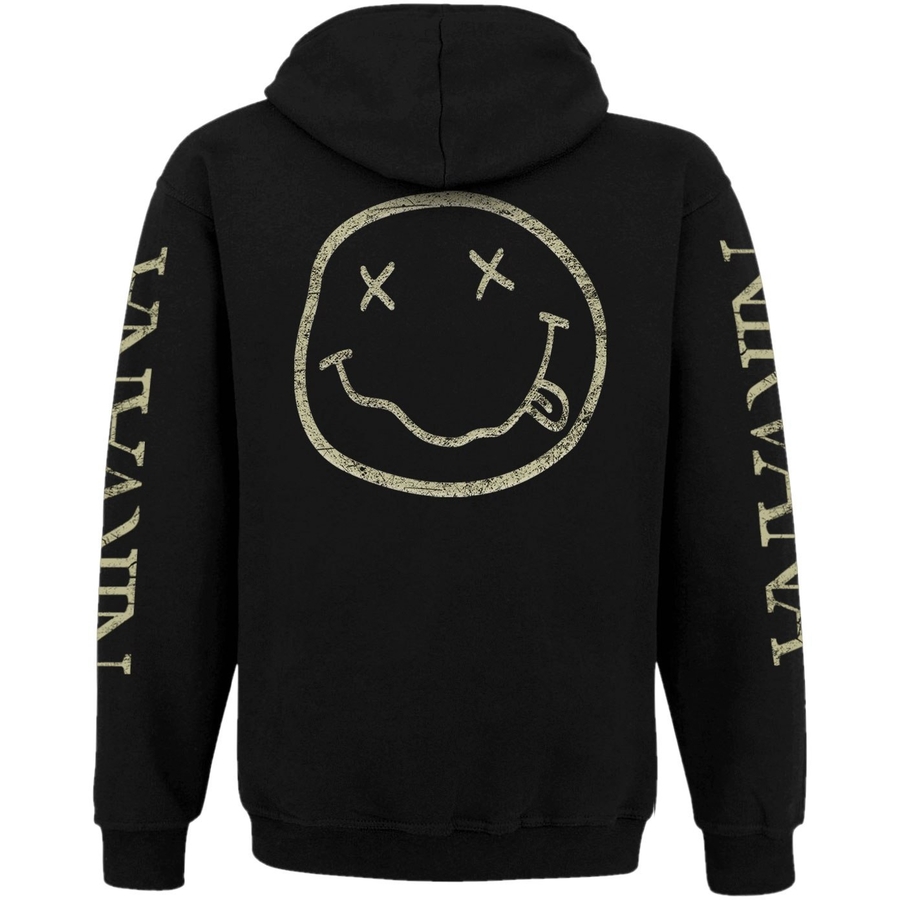 Худі Nirvana (band) на блискавці виробництво: Rockway; тканина: 80% - бавовна, 20% - поліестер; малюнок нанесений методом шовкотрафаретного друку (не тріскається, не псується внаслідок прання, не вигорає); малюнок: фарба пластизольна виробництва EU. Прати при температурі не вище 30°