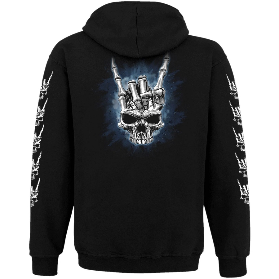 Худі Skeletons Metal Band на блискавці виробництво: Rockway; тканина: 80% - бавовна, 20% - поліестер; малюнок нанесений методом шовкотрафаретного друку (не тріскається, не псується внаслідок прання, не вигорає); малюнок: фарба пластизольна виробництва EU. Прати при температурі не вище 30°