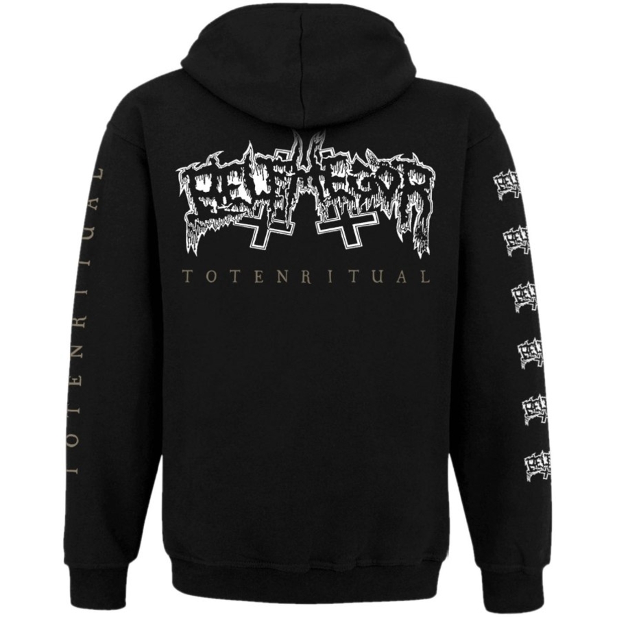 Худі Belphegor "Totenritual" на блискавці виробництво: Rockway; тканина: 80% - бавовна, 20% - поліестер; малюнок нанесений методом шовкотрафаретного друку (не тріскається, не псується внаслідок прання, не вигорає); малюнок: фарба пластизольна виробництва EU. Прати при температурі не вище 30°