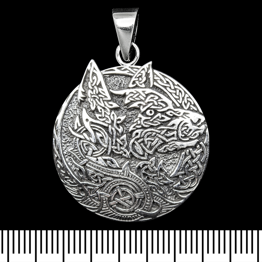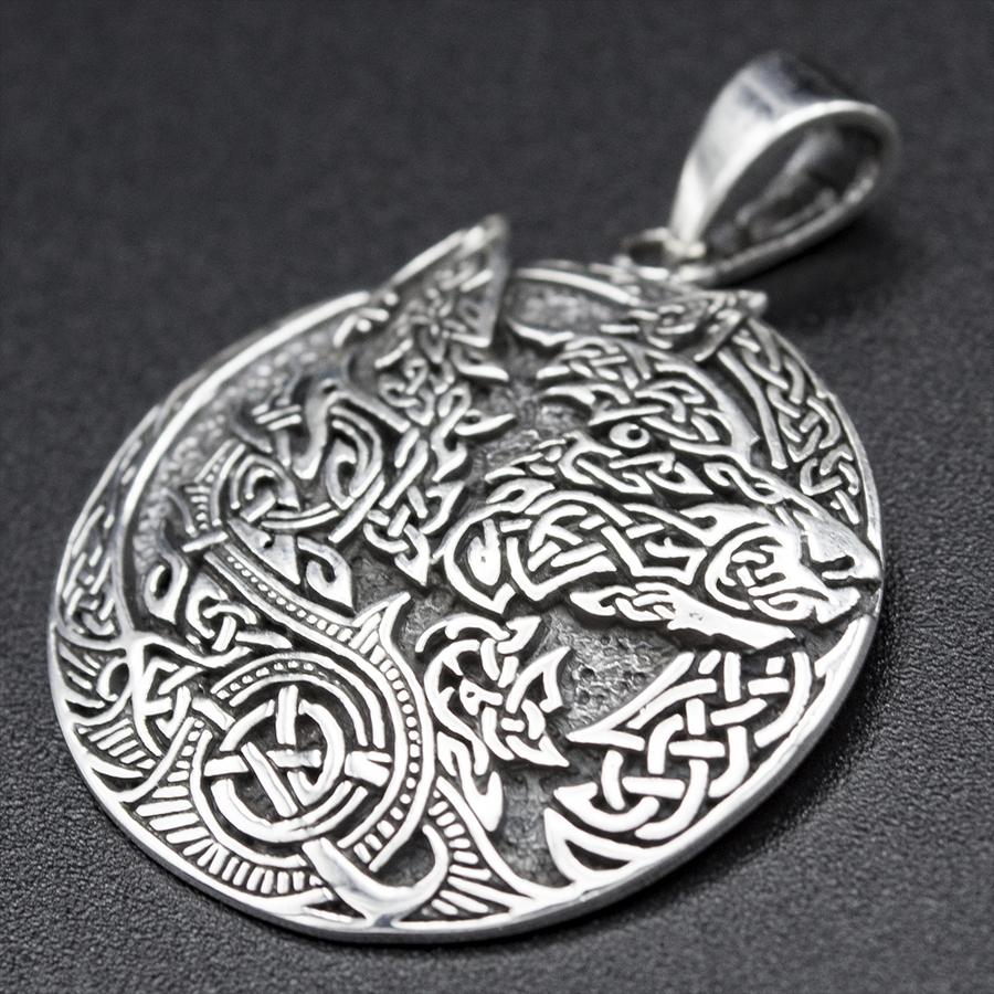 Кулон медальйон з вовком зі скандинавських візерунків (срібло, 925 проба) (sp-224)