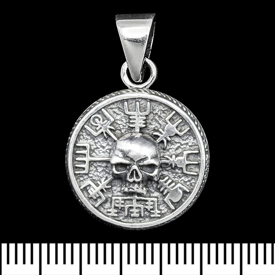 Кулон медальон Череп на рунічному компасі (маленький) (срібло, 925 проба) (sp-238) 3,2 грам, діаметр 17 мм, розмір вушка для ланцюжка 5х3 мм