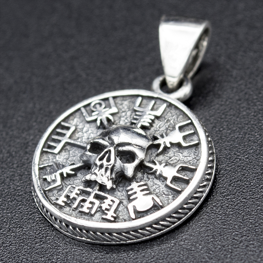 Кулон медальон Череп на рунічному компасі (маленький) (срібло, 925 проба) (sp-238)