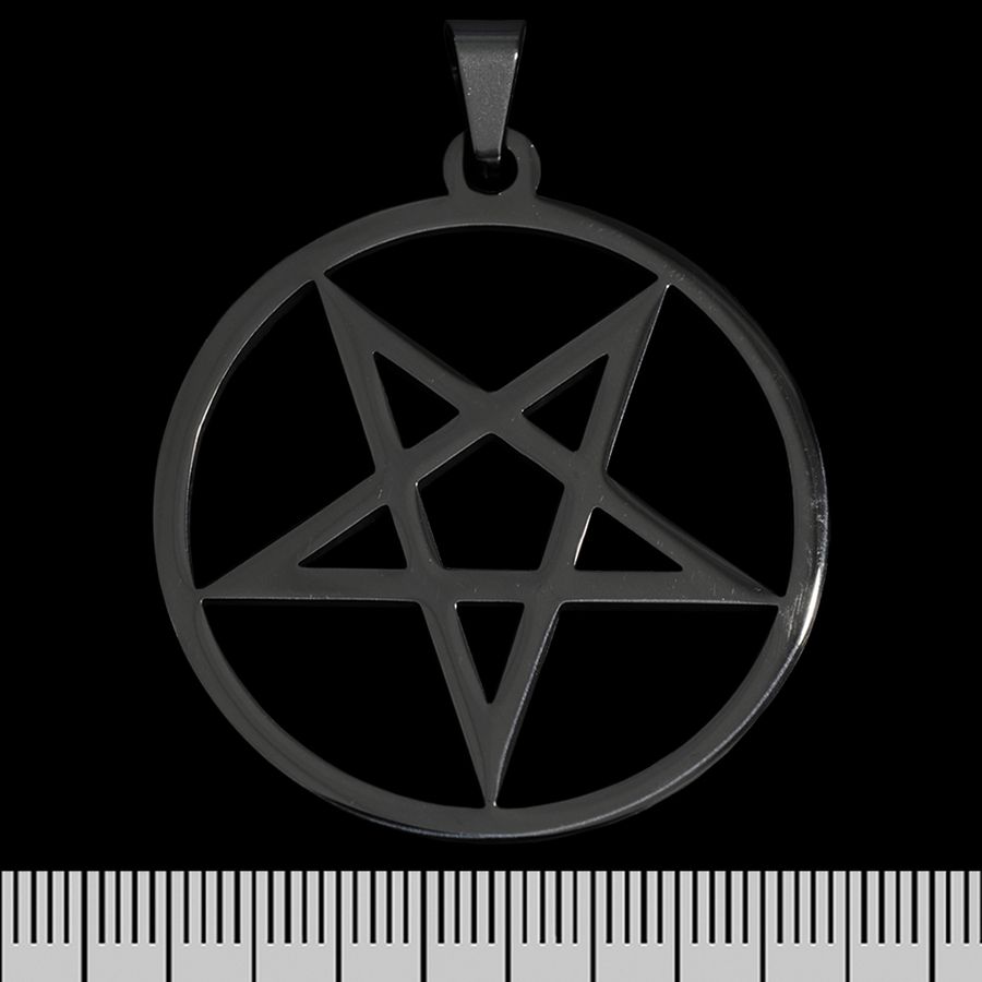 Кулон Перевернута пентаграма у кільці (велика, чорна) (ptsb-181)