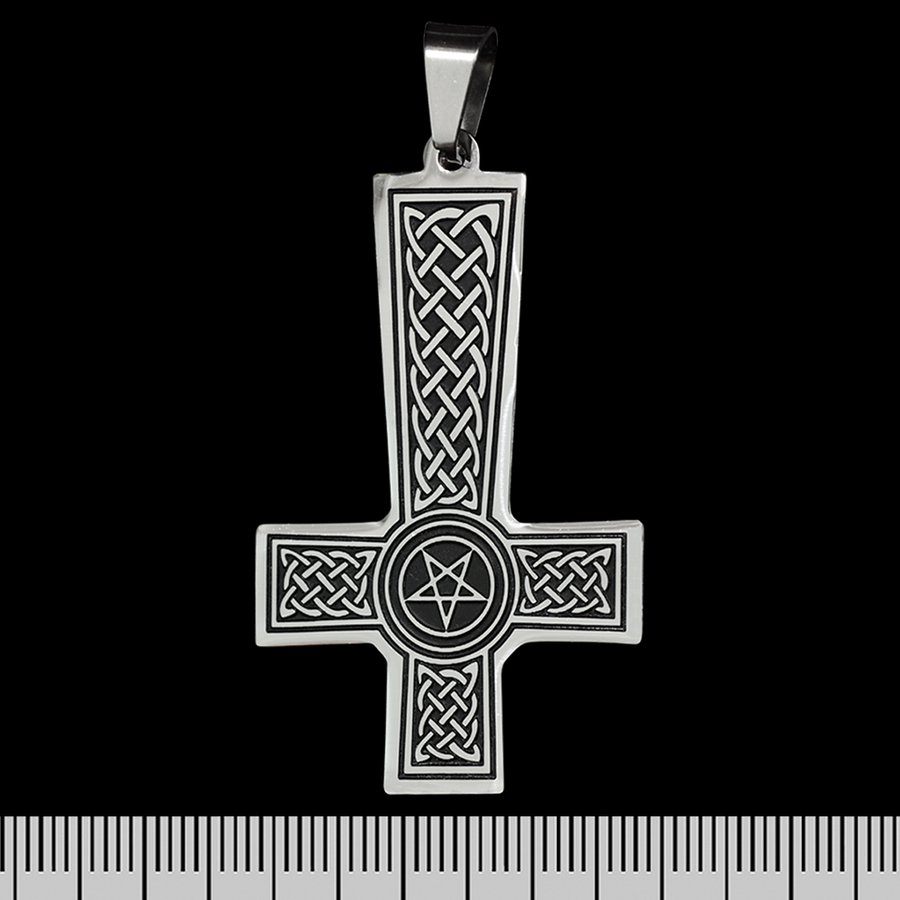 Кулон Перевернутий хрест з кельтським плетінням та пентаграмою, фігурний (ptsb-189)