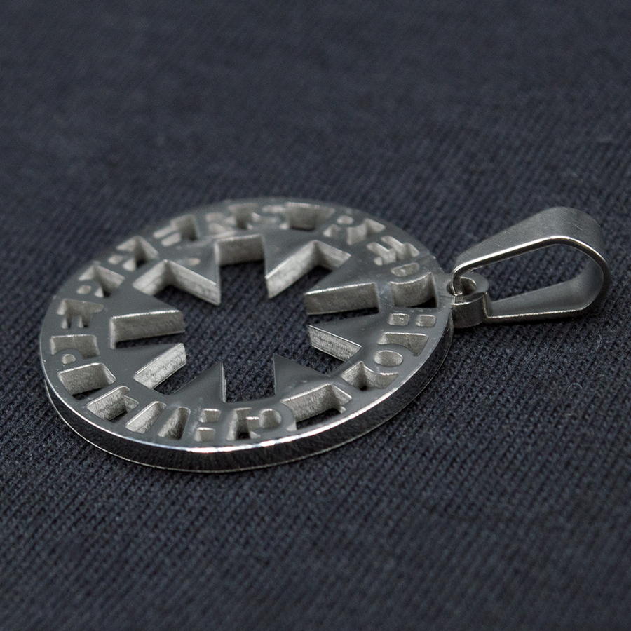 Кулон Red Hot Chili Peppers (logo), круглий, середній (ptsb-201) Кулон з нержавіючої медичної сталі.Вся обробка та гравірування кулона проведена сучасними методами за допомогою лазерів, завдяки чому кулон має ідеально точні рівні лінії, опрацьовані до найтонших дрібниць елементи форми кулона, а також гравіювання. Кулон відшліфований до дзеркального блиску, так званим методом Mirror Polished. Кулон не іржавіє, не окислюється, не темніє, не викликає алергічних реакцій. Матеріал нержавіюча гіпоалергенна медична сталь. Виробництво EU.