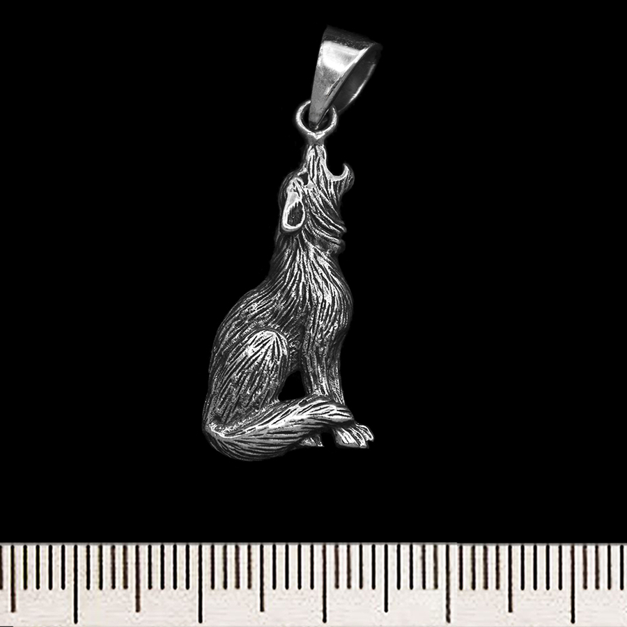 Кулон Вовк виє (срібло, 925 проба) довжина 28 мм, розмір вушка для ланцюжка 7х4,5 мм
