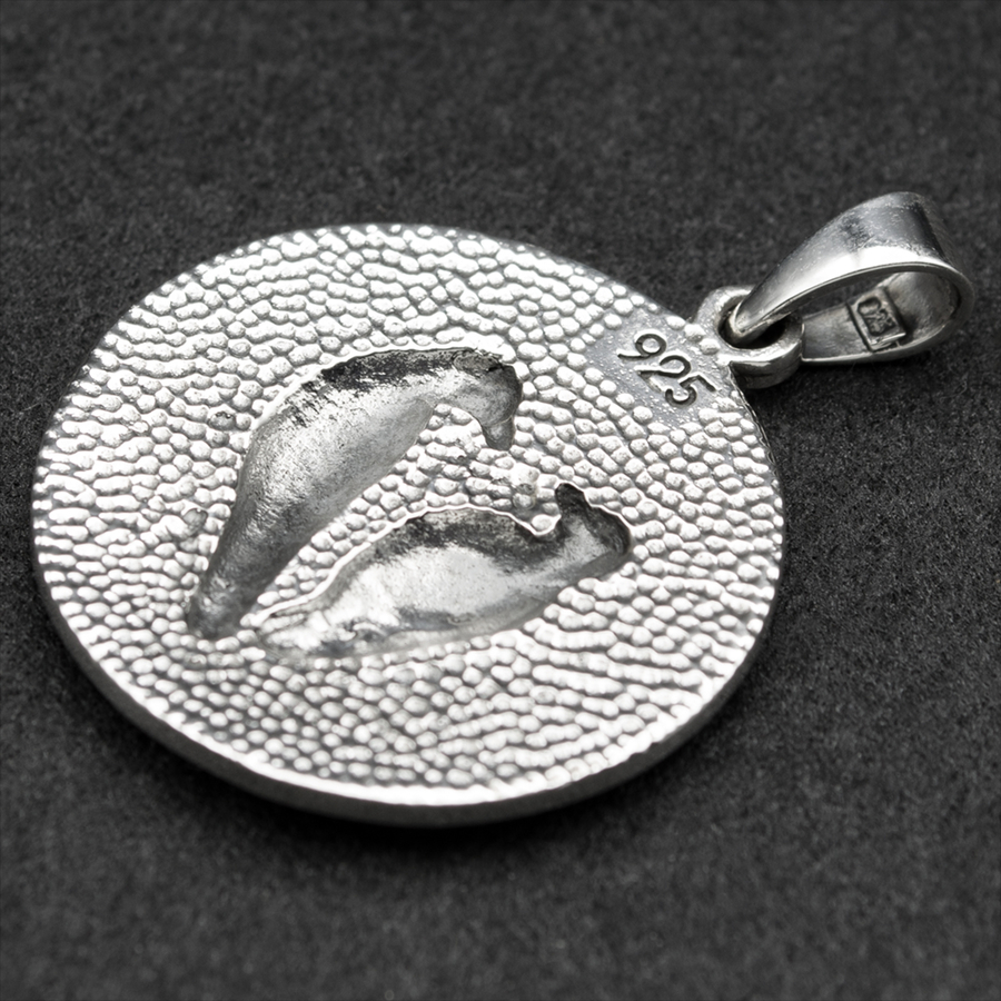 Кулон Ворони Одіна в рунічному колі з Валкнутом (срібло, 925 проба) (sp-172)