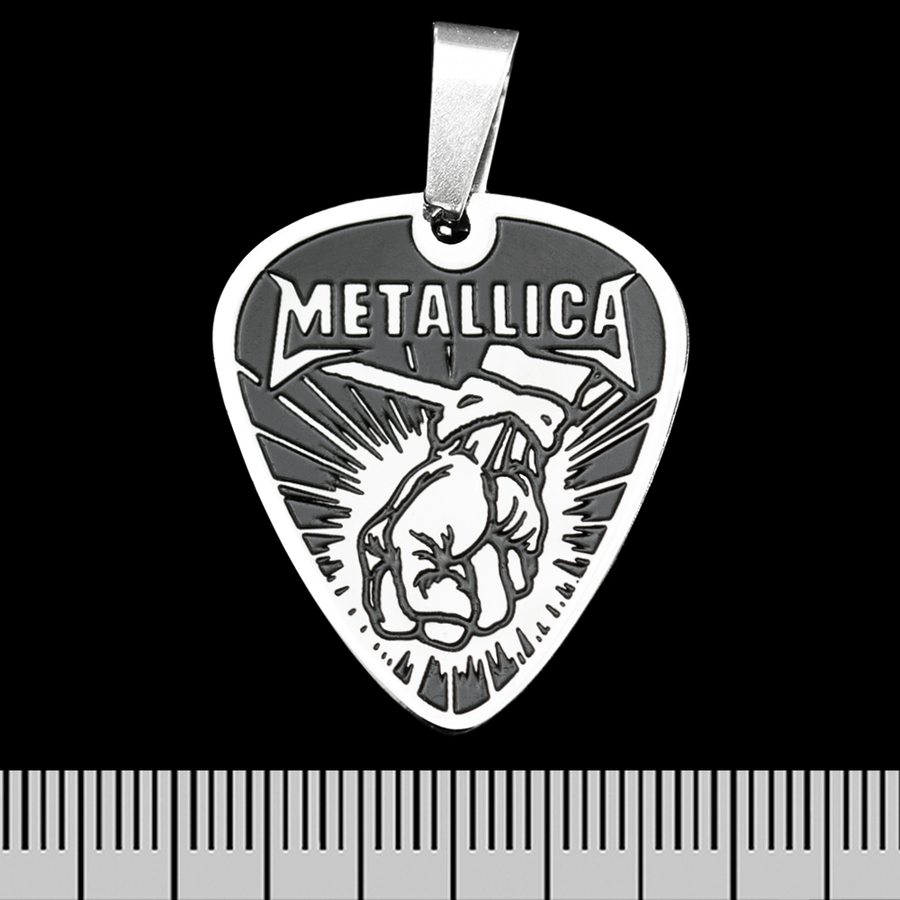 Кулон Metallica "St. Anger", чорний медіатор (ptsb-219) Кулон з нержавіючої медичної сталі.Вся обробка та гравірування кулона проведена сучасними методами за допомогою лазерів, завдяки чому кулон має ідеально точні рівні лінії, опрацьовані до найтонших дрібниць елементи форми кулона, а також гравіювання. Кулон відшліфований до дзеркального блиску, так званим методом Mirror Polished. Кулон не іржавіє, не окислюється, не темніє, не викликає алергічних реакцій. Матеріал нержавіюча гіпоалергенна медична сталь. Виробництво EU.