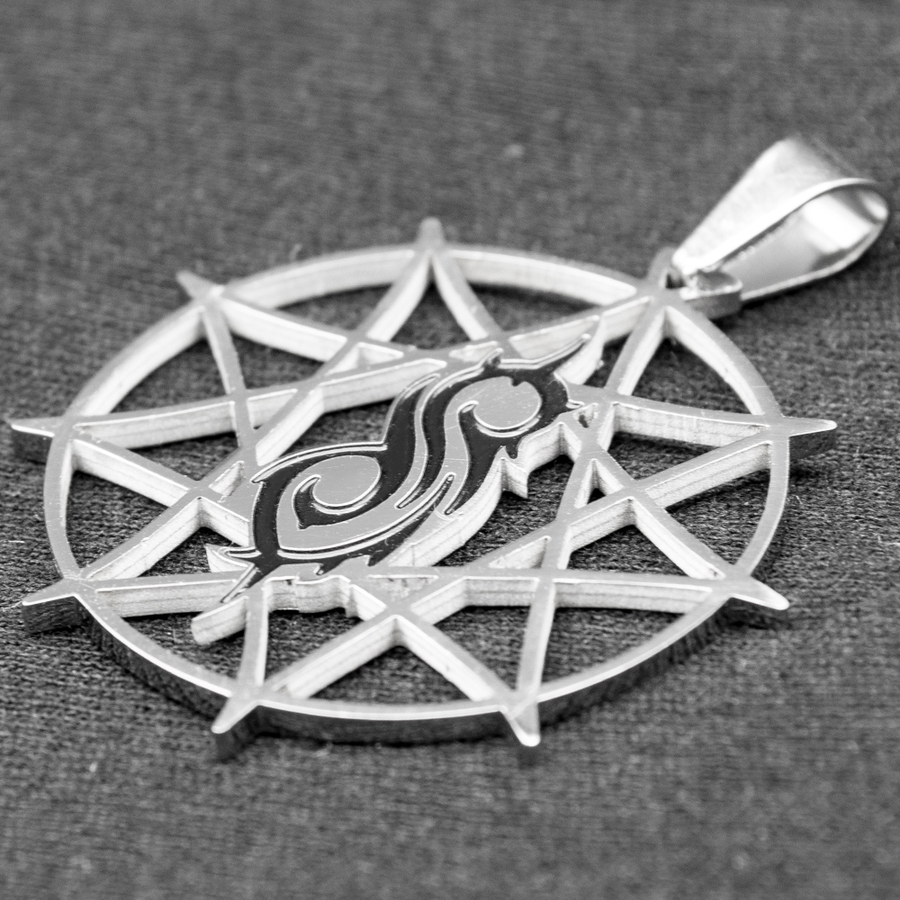 Кулон Slipknot (black S logo in star) (ptsb-235) Кулон з нержавіючої медичної сталі.Вся обробка та гравірування кулона проведена сучасними методами за допомогою лазерів, завдяки чому кулон має ідеально точні рівні лінії, опрацьовані до найтонших дрібниць елементи форми кулона, а також гравіювання. Кулон відшліфований до дзеркального блиску, так званим методом Mirror Polished. Кулон не іржавіє, не окислюється, не темніє, не викликає алергічних реакцій. Матеріал нержавіюча гіпоалергенна медична сталь. Виробництво EU.