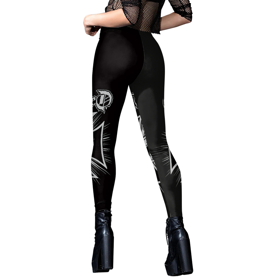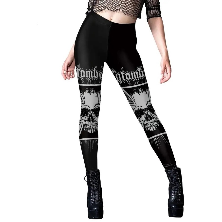 Легінси Entombed (skull in cross) Якісні легінси з щільної тканини, що добре тягнеться. Зображення нанесено методом термохімічного сублімаційного друку (не відчувається на тканині, не вистирається). Склад тканини 88% поліестр, 12% спандекс. Будьте уважними при виборі, легінси підходять на наступні параметри: об'єм талії 67-83 см, об'єм стегон 100-120 см, довжина 94 см.