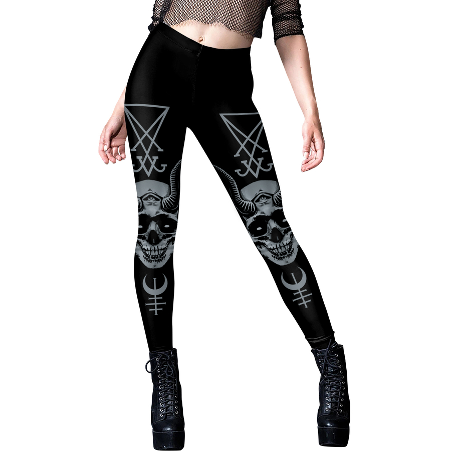 Легінси Lucifer Якісні легінси з щільної тканини, що добре тягнеться. Зображення нанесено методом термохімічного сублімаційного друку (не відчувається на тканині, не вистирається). Склад тканини 88% поліестр, 12% спандекс. Будьте уважними при виборі, легінси підходять на наступні параметри: об'єм талії 67-83 см, об'єм стегон 100-120 см, довжина 94 см.