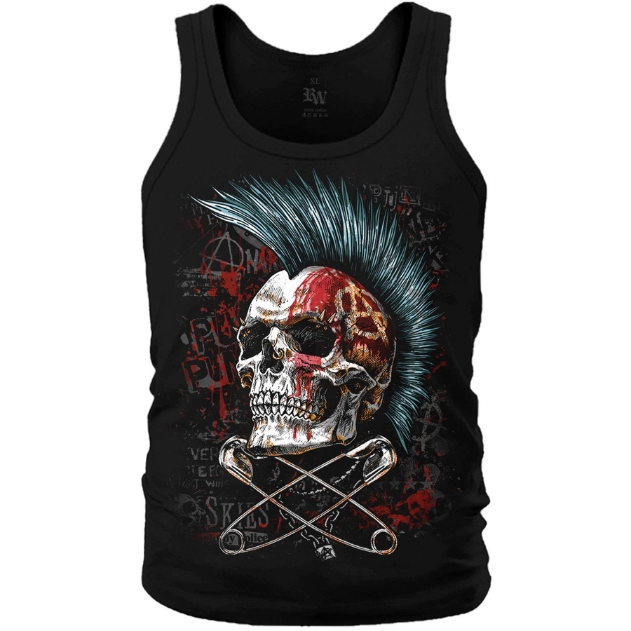 Майка Череп з ірокезом - Anarchy (булавки) Майка Rockway виробництво: Україна; тканина: 100% бавовна (якісні шви, горловина не розтягується); малюнок нанесений методом шовкотрафаретного друку (не тріскається, не псується внаслідок прання, не вигорає); малюнок: фарба пластизольна, виробництва EU. Прати при температурі не вище 30°
