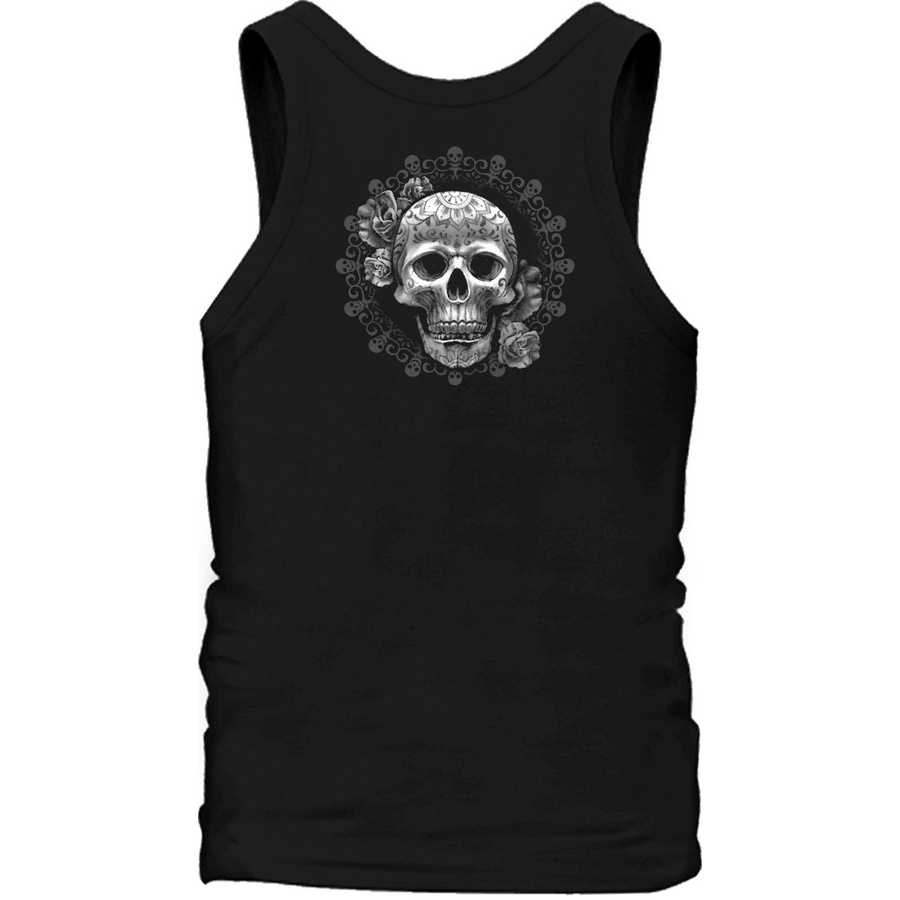Майка Muerte (skull and roses)Майка Rockwayвиробництво: Україна;тканина: 100% бавовна (якісні шви, горловина не розтягується);малюнок нанесений методом шовкотрафаретного друку (не тріскається, не псується внаслідок прання, не вигорає);малюнок: фарба пластизольна, виробництва EU.Прати при температурі не вище 30°