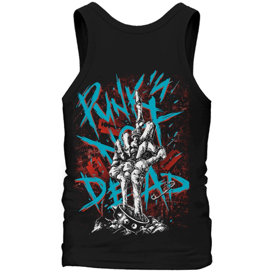 Майка Punk’s Not Dead (скелет з ірокезом)Майка Rockwayвиробництво: Україна;тканина: 100% бавовна (якісні шви, горловина не розтягується);малюнок нанесений методом шовкотрафаретного друку (не тріскається, не псується внаслідок прання, не вигорає);малюнок: фарба пластизольна, виробництва EU.Прати при температурі не вище 30°