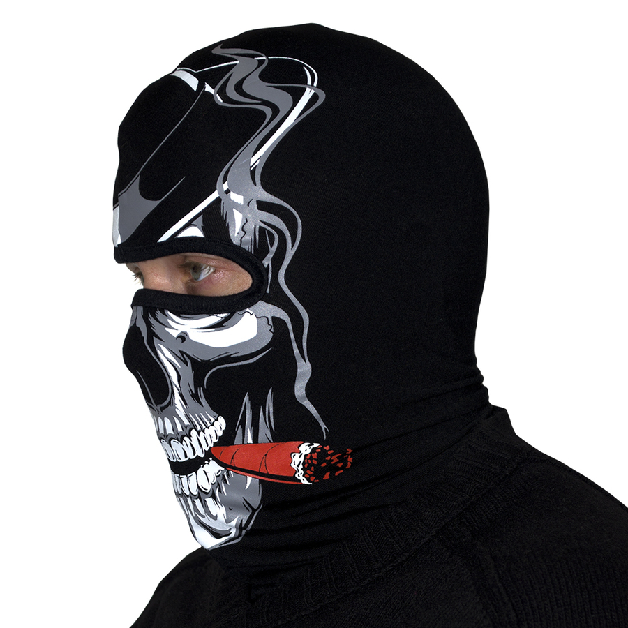 Маска балаклава виконана з бавовни з додаванням спандекса, завдяки чому добре тягнеться. Можна використовувати як підшоломник, в даному випадку вона добре виводить вологу і фільтрує повітря від пилу.