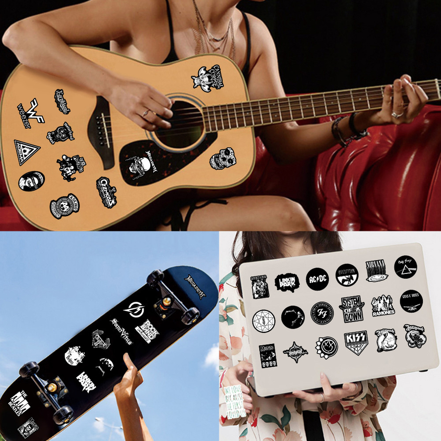 Heavy Metal, Hard Rock, Punk, Grunge, Nu Metal, Thrash Metal, від The Beatles, Led Zeppelin, AC/DC, Misfits, Ozzy Osbourne, Metallica, Nirvana до Linkin Park, Slipknot, System Of A Down, Cannibal Corpse, ціла історія важкої музики. Топ-гурти засновники стилів, що відкрили шляхи розвитку нових напрямів музики. Все це ти знайдеш у цьому наборі наклейок, цей набір - справжній маст-хев для фанатів. Матеріал стікерів: Вініл (ПВХ). Якісні стікери (наліпки), стійкі до вологи. Їх можна приклеїти практично на будь-яку гладку не пористу поверхню. Стікерами можна прикрасити ноутбук, смартфон, планшет, стіну, дзеркало, холодильник, стіл, велосипед, скейтборд, гітару або кейс для неї, навіть чашку, але чашки краще купувати у нас вже віддруковані, взагалі можна обклеїти все, на що вистачить фантазії. Перед наклеюванням стікера поверхню очистити від пилу і забруднень, бажано також знежирити для більш надійного скріплення. Кожен стікер вирізаний по контуру, його легко відокремити, щоб одразу прикрасити свій простір.