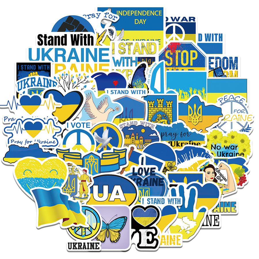 Набір стікерів Stand With Ukraine (stk-059) 49 шт Кількість в наборі: 49 шт Матеріал стікерів: Вініл (ПВХ). Якісні стікери (наліпки), стійкі до вологи. Їх можна приклеїти практично на будь-яку гладку не пористу поверхню. Стікерами можна прикрасити ноутбук, смартфон, планшет, стіну, дзеркало, холодильник, стіл, велосипед, скейтборд, гітару або кейс для неї, навіть чашку, але чашки краще купувати у нас вже віддруковані, взагалі можна обклеїти все, на що вистачить фантазії. Перед наклеюванням стікера поверхню очистити від пилу і забруднень, бажано також знежирити для більш надійного скріплення. Кожен стікер вирізаний по контуру, його легко відокремити, щоб одразу прикрасити свій простір.