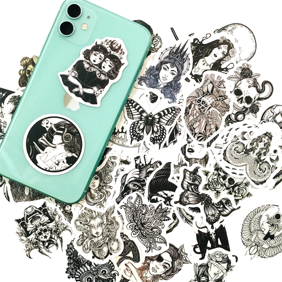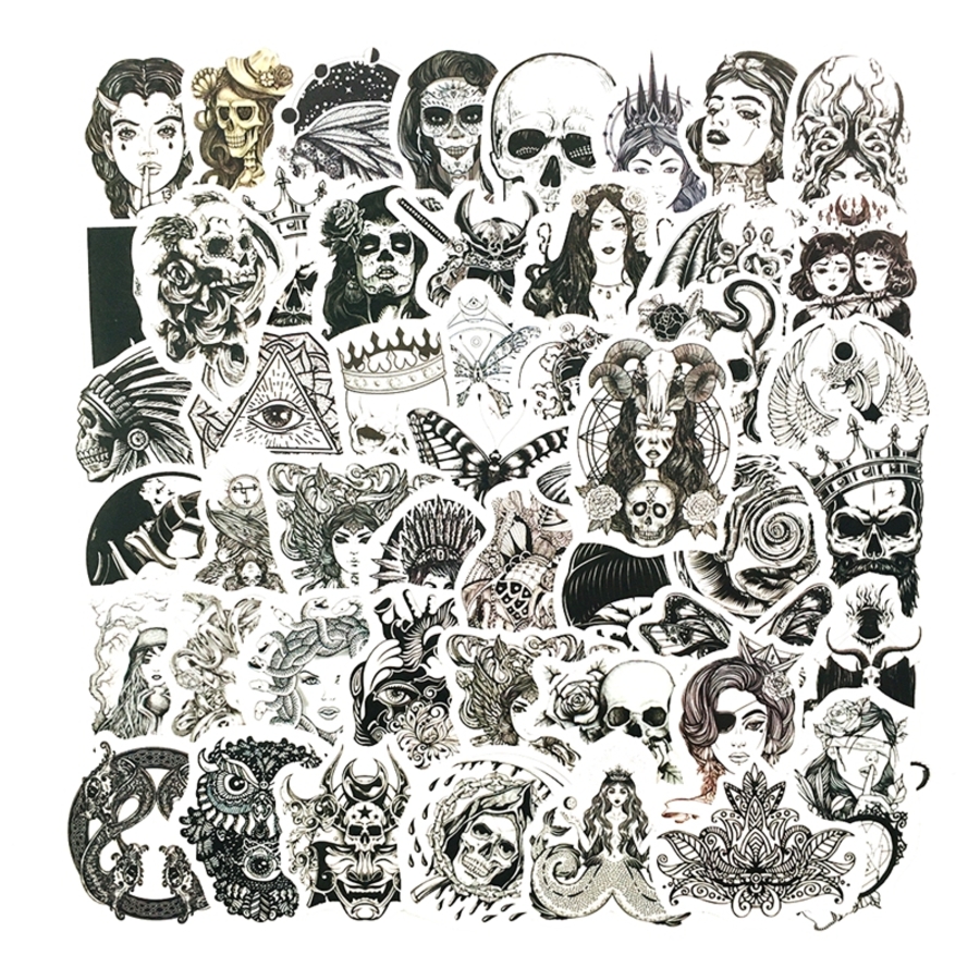 Набір стікерів Tattoo (black-white) (stk-026) (50 шт.)
