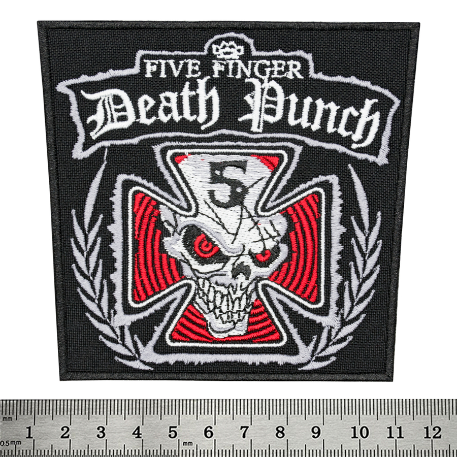 Нашивка Five Finger Death Punch Розмір - 10х9 см Пришивна нашивка.При необхідності до нашивки можете пришити липучку, щоб закріпити її на одязі, рюкзаку і т.д. там, де вже є місце під подібні аксесуари.