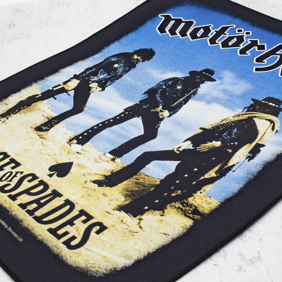 Нашивка наспинна катана MOTORHEAD - ACE OF SPADES (olbp-027) Висота 35.5 см, ширина по верхньому краю 29.5 см, ширина по нижньому краю 26 см Цей товар є офіційним ліцензованим мерчем (Officially Licensed Backpath). Наспинна нашивка високої преміум якості. Краї нашивки оброблені оверлоком, завдяки чому виріб виглядає максимально акуратним. Зображення нанесене методом шовкотрафаретного друку, висока деталізація свідчить про неперевершену якість виробу. Нашивка пришивна, м'яка, ідеально повторюватиме вигини на одязі. Склад тканини: бавовна/поліестер. Зроблено у Великій Британії