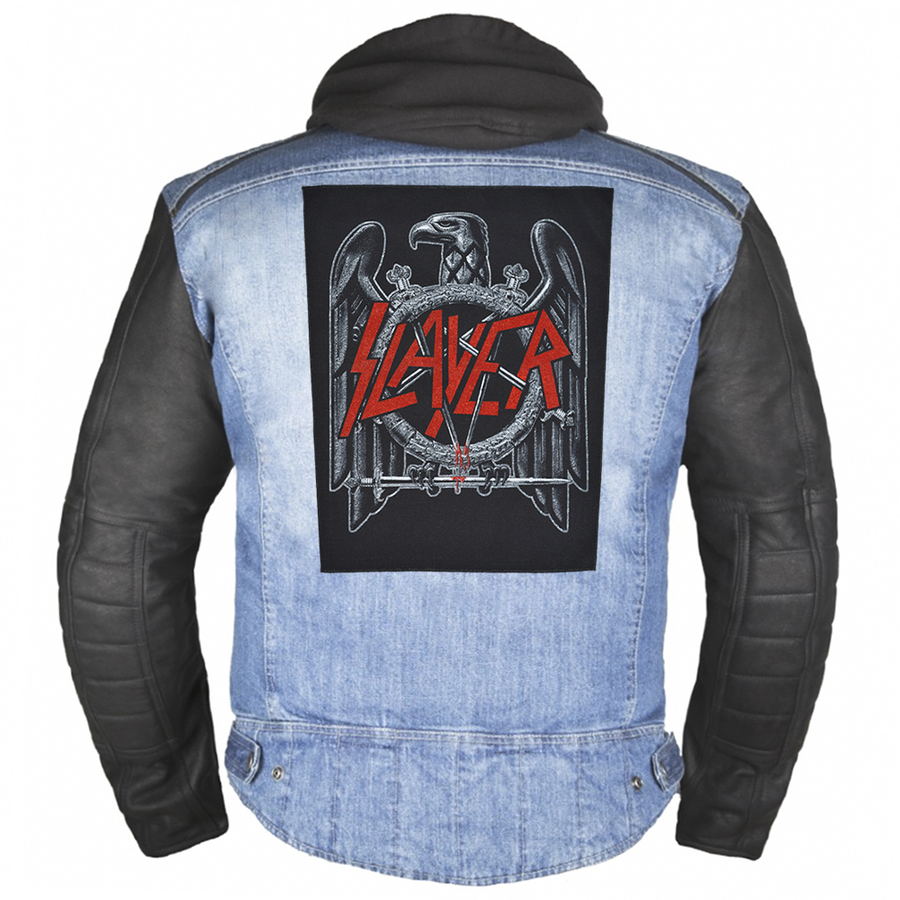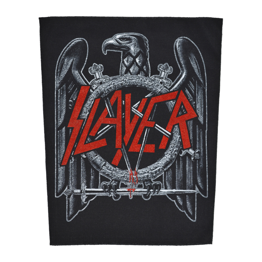 Нашивка наспинна катана SLAYER - BLACK EAGLE (olbp-069) Висота 35 см, ширина по верхньому краю 29 см, ширина по нижньому краю 26 см Цей товар є офіційним ліцензованим мерчем (Officially Licensed Backpath). Наспинна нашивка високої преміум якості. Краї нашивки оброблені оверлоком, завдяки чому виріб виглядає максимально акуратним. Зображення нанесене методом шовкотрафаретного друку, висока деталізація свідчить про неперевершену якість виробу. Нашивка пришивна, м'яка, ідеально повторюватиме вигини на одязі. Склад тканини: бавовна/поліестер. Зроблено у Великій Британії