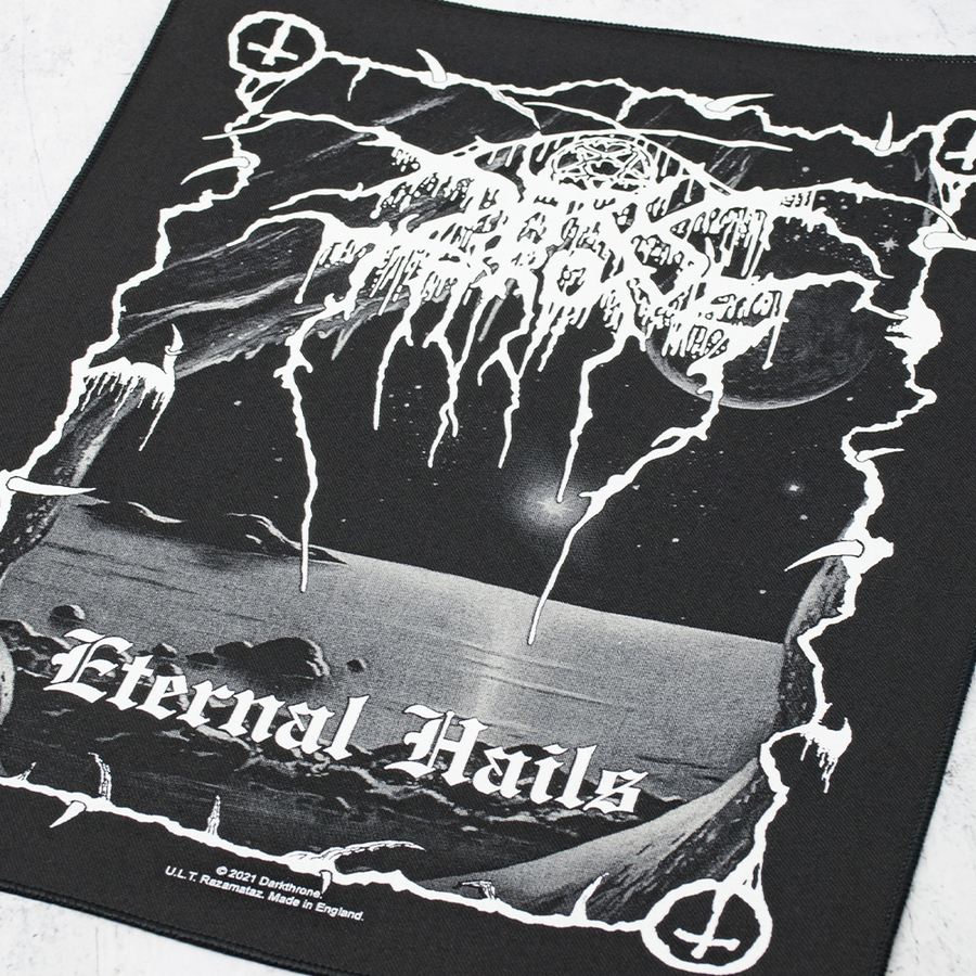 Нашивка наспинна катана DARKTHRONE - ETERNAL HAILS (olbp-057) Висота 36 см, ширина по верхньому краю 29 см, ширина по нижньому краю 26 см Цей товар є офіційним ліцензованим мерчем (Officially Licensed Backpath). Наспинна нашивка високої преміум якості. Краї нашивки оброблені оверлоком, завдяки чому виріб виглядає максимально акуратним. Зображення нанесене методом шовкотрафаретного друку, висока деталізація свідчить про неперевершену якість виробу. Нашивка пришивна, м'яка, ідеально повторюватиме вигини на одязі. Склад тканини: бавовна/поліестер. Зроблено у Великій Британії