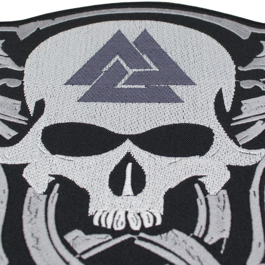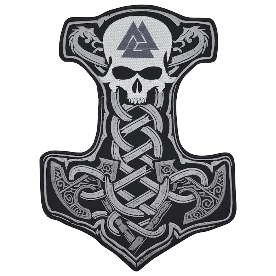 Нашивка наспинна Молот Тора з черепом (Валкнут)