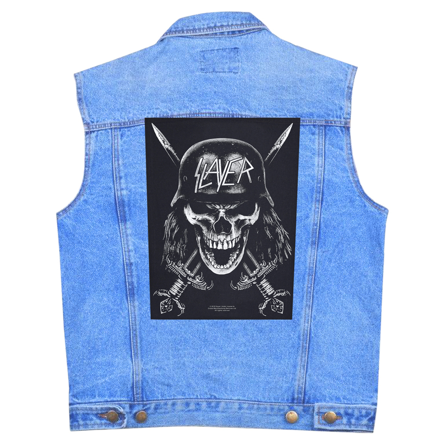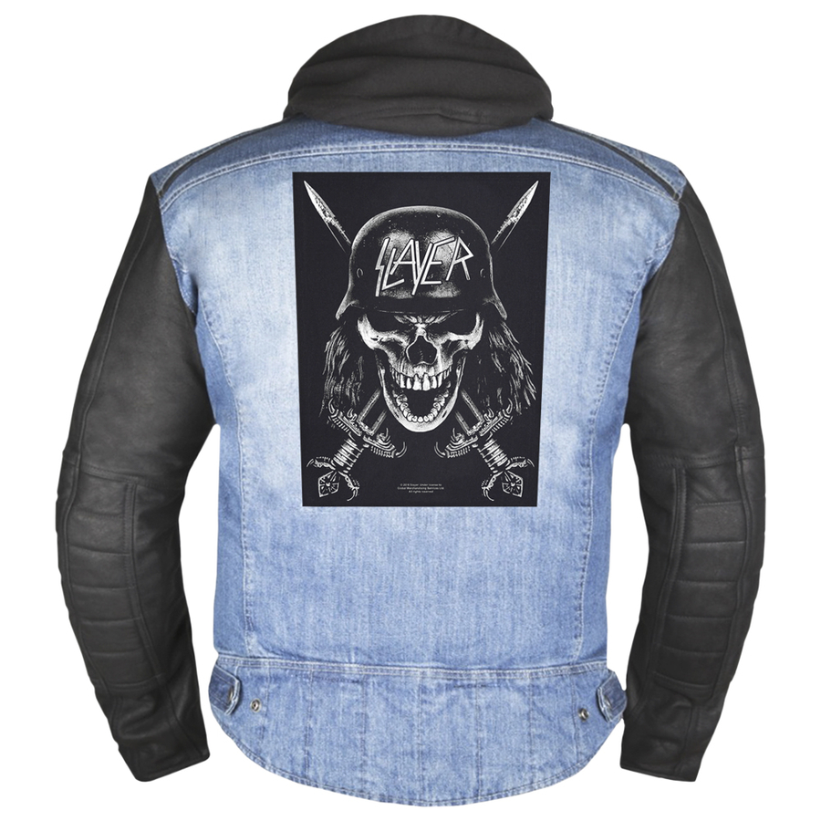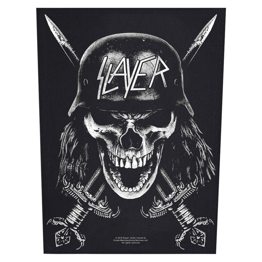 Нашивка наспинна катана SLAYER - WEHRMACHT (olbp-083) Висота 36 см, ширина по верхньому краю 29 см, ширина по нижньому краю 26 см Цей товар є офіційним ліцензованим мерчем (Officially Licensed Backpath). Наспинна нашивка високої преміум якості. Краї нашивки оброблені оверлоком, завдяки чому виріб виглядає максимально акуратним. Зображення нанесене методом шовкотрафаретного друку, висока деталізація свідчить про неперевершену якість виробу. Нашивка пришивна, м'яка, ідеально повторюватиме вигини на одязі. Склад тканини: бавовна/поліестер. Зроблено у Великій Британії