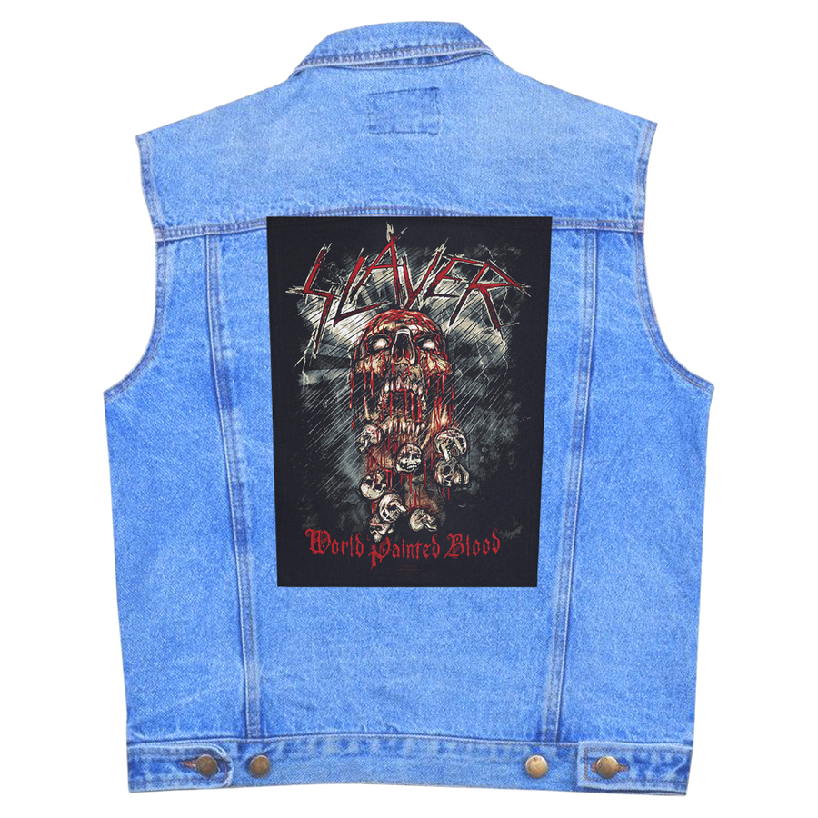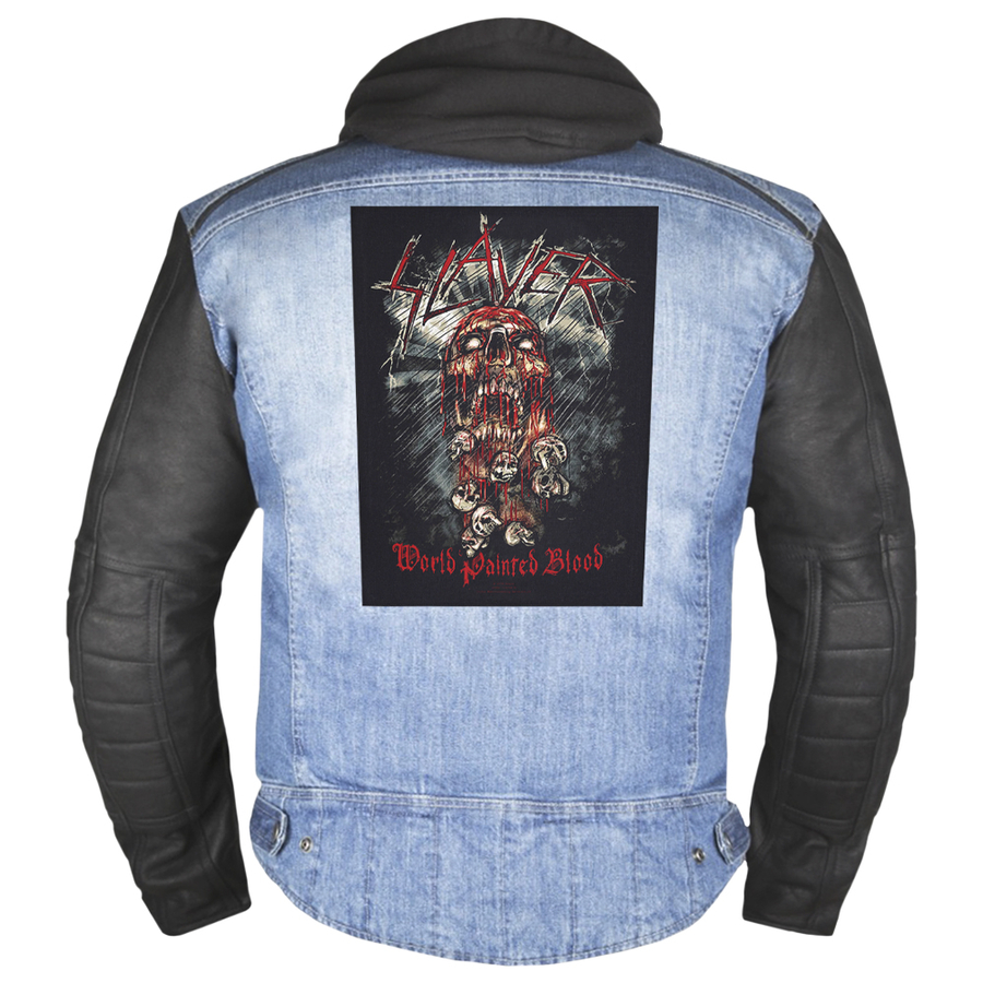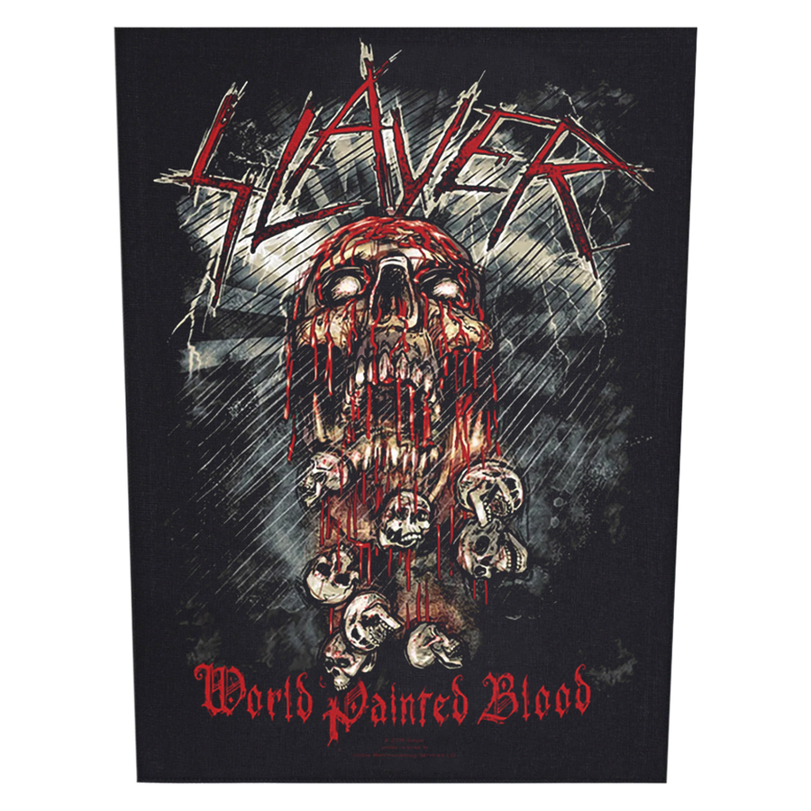 Нашивка наспинна катана SLAYER - WORLD PAINTED BLOOD (olbp-081) Висота 36 см, ширина по верхньому краю 29 см, ширина по нижньому краю 26 см Цей товар є офіційним ліцензованим мерчем (Officially Licensed Backpath). Наспинна нашивка високої преміум якості. Краї нашивки оброблені оверлоком, завдяки чому виріб виглядає максимально акуратним. Зображення нанесене методом шовкотрафаретного друку, висока деталізація свідчить про неперевершену якість виробу. Нашивка пришивна, м'яка, ідеально повторюватиме вигини на одязі. Склад тканини: бавовна/поліестер. Зроблено у Великій Британії